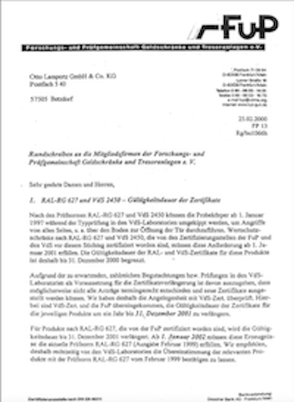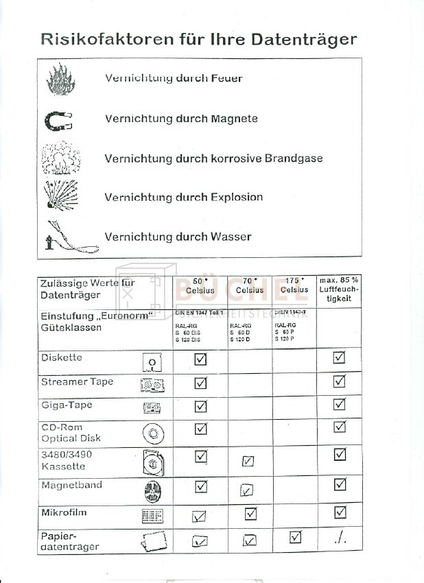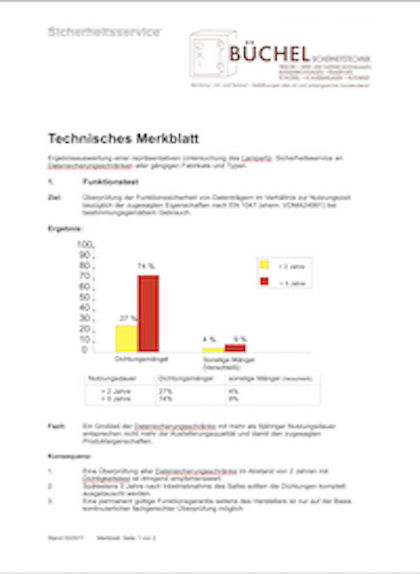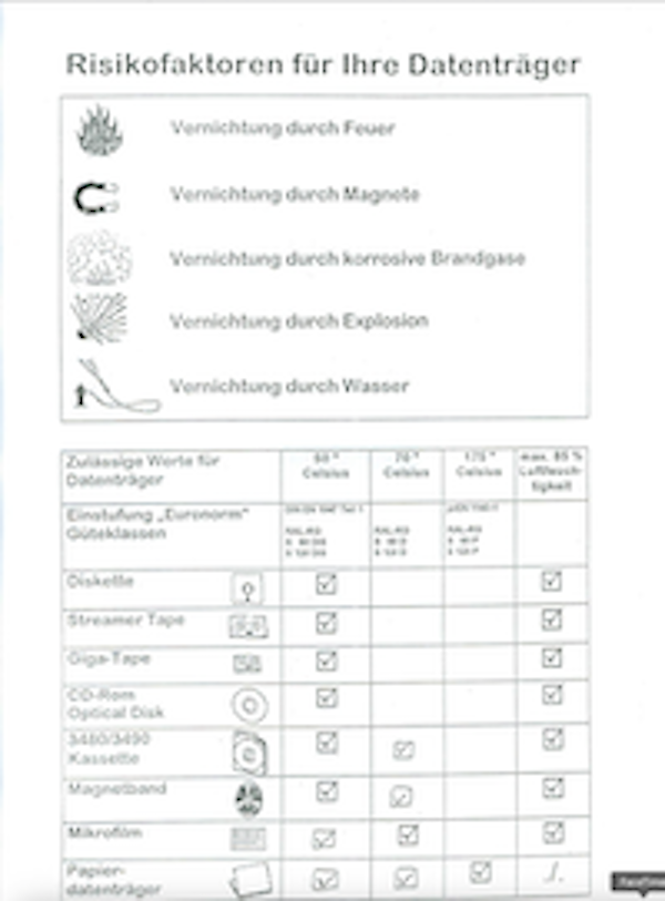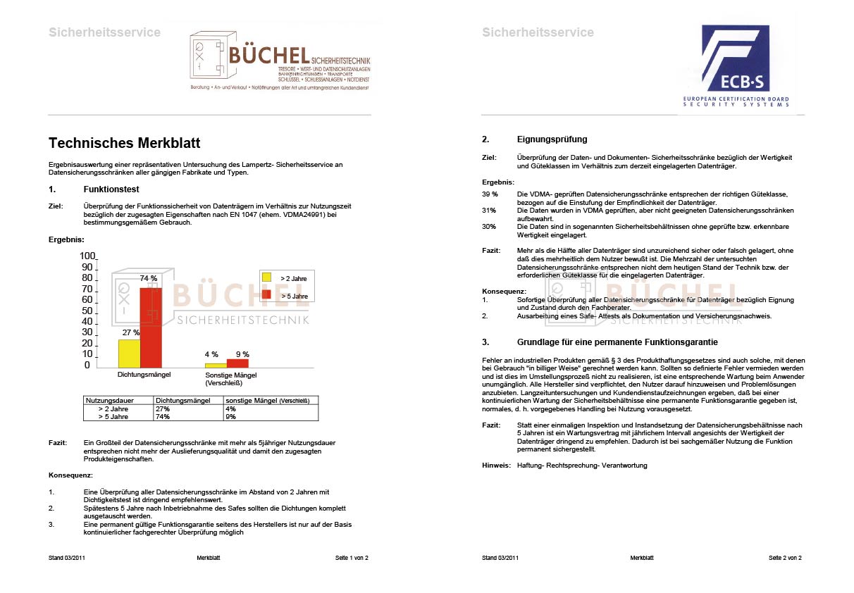 Ein Großteil der Datensicherungssafes entspricht nach 5 Jahren Nutzungsdauer nicht mehr der Auslieferungsqualität (S 60 DIS / S 120 DIS).