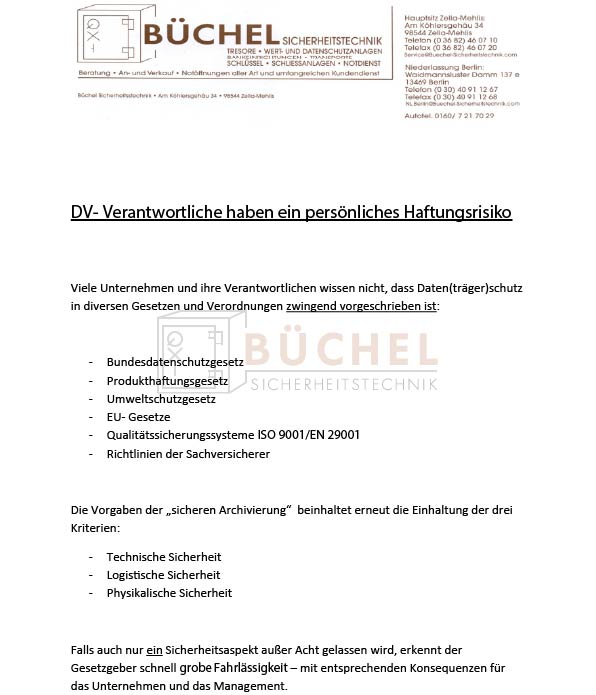 Sie haben mit dem Erwerb eines zertifizierten Datensafes (z.B. Lampertz, Burg Wächter) den ersten Schritt getan. Doch Untersuchungen zeigen ein erschreckendes Bild: